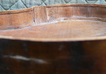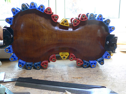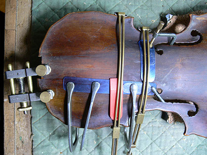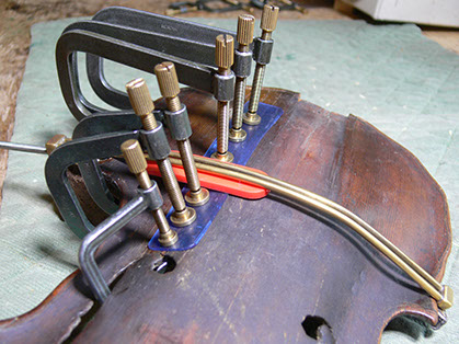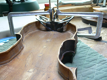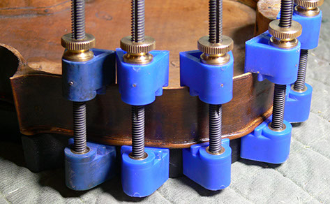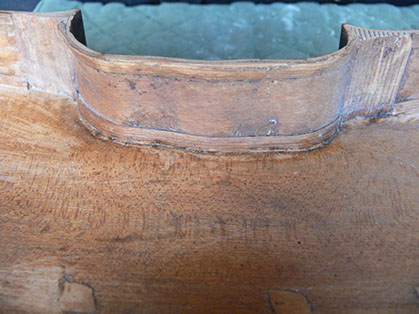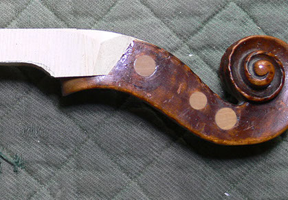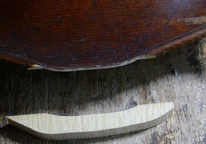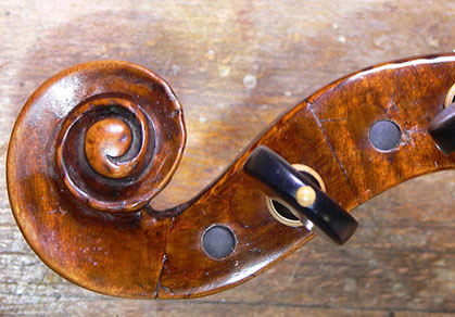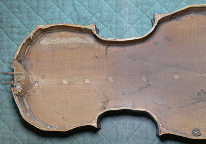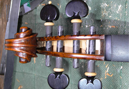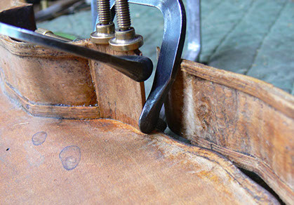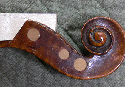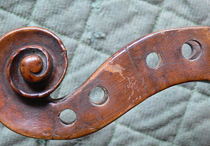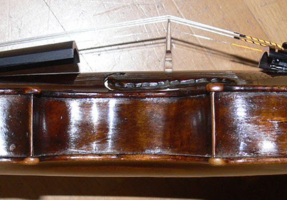 Anfang 2016 kam ein Herr aus Füssen in meine Werkstatt und bat mich, seine Geige, welche er kurz davor erworben hatte, zu restaurieren. Zu meinem Erstaunen handelte es sich um eine der selten vorkommenden, aber bekannten Wellengeigen von Johann Anton Gedler, einem Geigenbauer, der ca. 1725 in Würzburg geboren ist und sich dann später in Füssen selbständig machte. Gedler gilt als einer der besten Füssener Meister. Er starb ca. 1790 in Füssen. Gedler fertigte den Umriss, samt den Einlagen, Futterleisten und auch die Zargen wellig an, um den Instrumenten ein einmaliges Aussehen zu geben. Er gab selbst den F-Löchern eine wellige Form, sowie er auch die Schnecke mit kleinen Wellen im Randel wellig schnitzte. Eine Geige in dieser Form herzustellen ist wesentlich aufwendiger, als eine normale Form zu bauen. Diese Wellenform ist weltweit einzigartig und nur von ihm angefertigt worden.