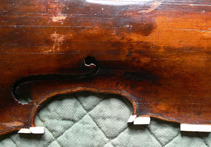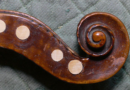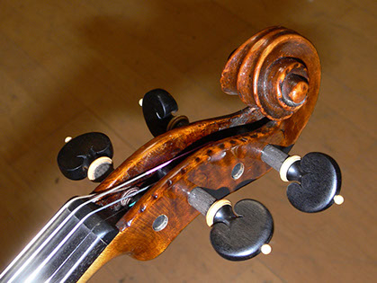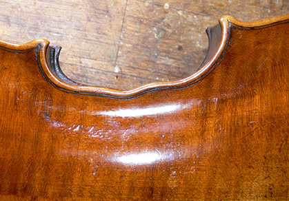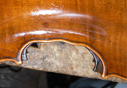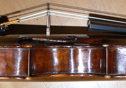 Da ich selbst in Füssen aufgewachsen bin, interessierte es mich sehr die Geige wieder in einen schönen und spielbaren Zustand zu bringen. Die Violine war in einem sehr desolaten Zustand und wurde bestimmt mehrere Jahrzehnte nicht mehr gespielt. Die Restauration dauerte ca. 2 Monate, da viele aufwendige Details ergänzt werden mussten, wie z.B. die wellige Einlage, welche nicht mehr vollständig vorhanden war oder auch ein komplett neuer Hals, Griffbrett, Unter- und Oberklotz, Steg, Stimmstock, Bassbalken usw. angefertigt werden mussten. Die Geige hat nun nach der Restauration einen schönen offenen, warmen und dennoch kräftigen Ton und ist wieder bei Ihrem Eigentümer in Füssen.