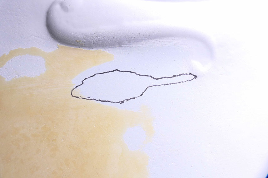 Mit Epoxydharz schlecht reparierter Rand der Decke