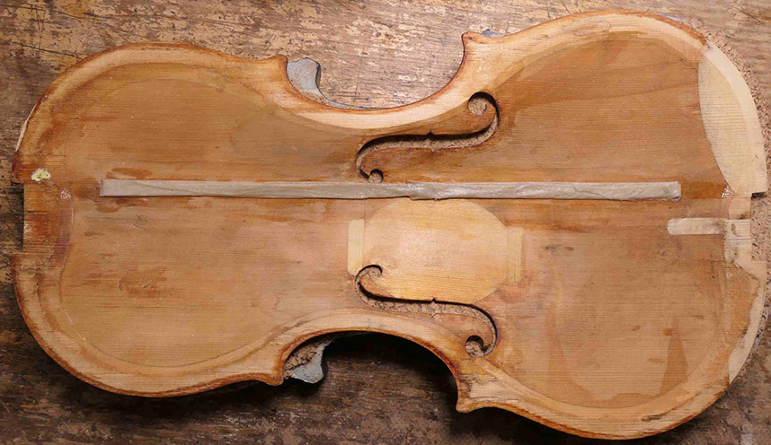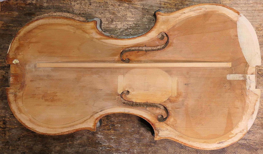 Diese Violine ist aus exakt dem selben Stamm gebaut worden, wie die restaurierte Violine. Somit ist hier auch eindeutig bewiesen, dass es sich um eine echte Decke von Jacobus Stainer handelt. Das aktuelle dendrochro-